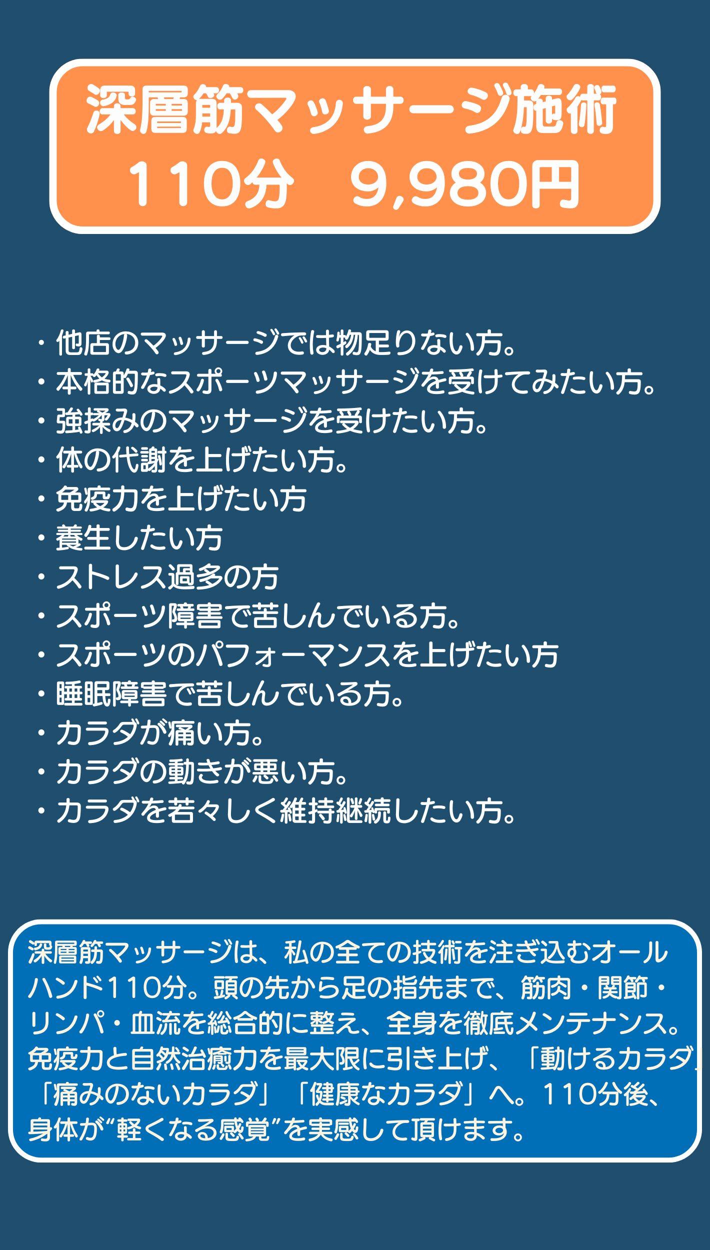 深層マッサージ施術の料金案内です。